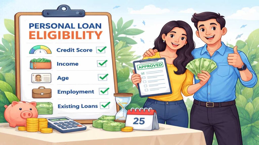 Personal loan eligibility refers to the set of rules, conditions, and financial standards that banks and financial institutions use to determine whether you qualify for a personal loan. Before approving your loan application, lenders carefully evaluate your financial stability, repayment capacity, and credit behavior.